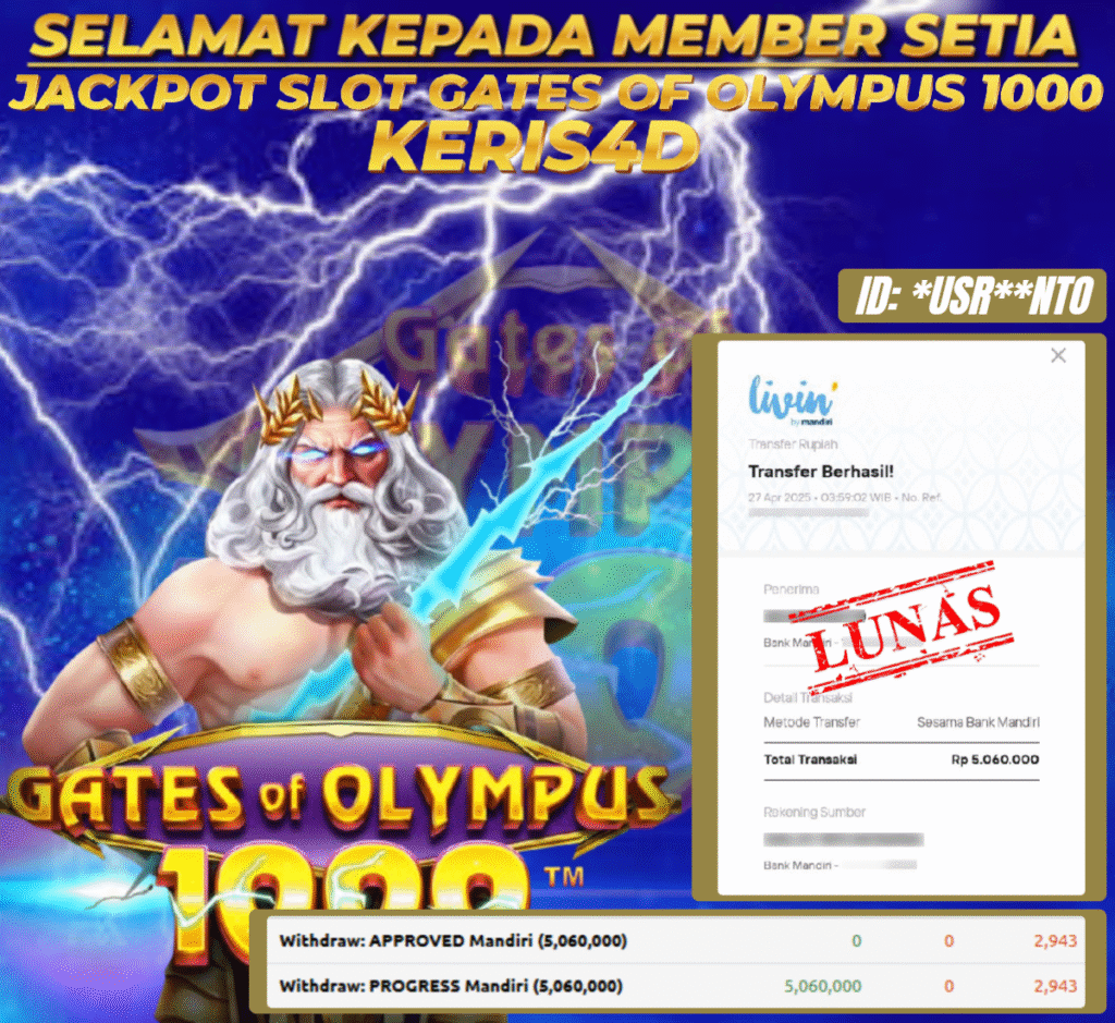 KERIS4D dikenal sebagai situs terpercaya yang selalu menghadirkan pengalaman bermain slot online yang aman, fair, dan berlisensi resmi. Di sini, kami tidak hanya sekadar memberikan janji, tapi bukti nyata berupa slip kemenangan yang dapat Anda lihat secara langsung.