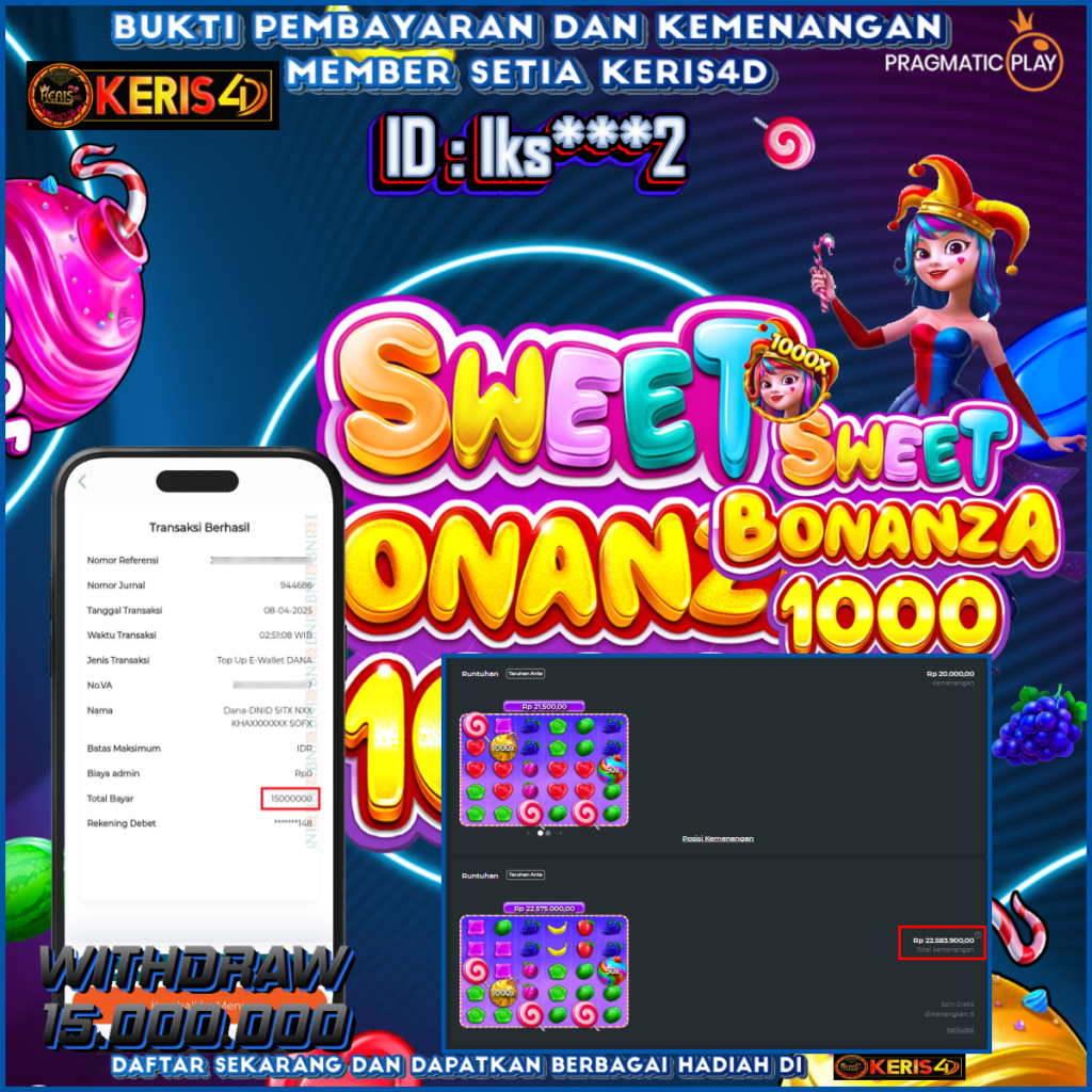 KERIS4D dikenal sebagai situs terpercaya yang selalu menghadirkan pengalaman bermain slot online yang aman, fair, dan berlisensi resmi. Di sini, kami tidak hanya sekadar memberikan janji, tapi bukti nyata berupa slip kemenangan yang dapat Anda lihat secara langsung.