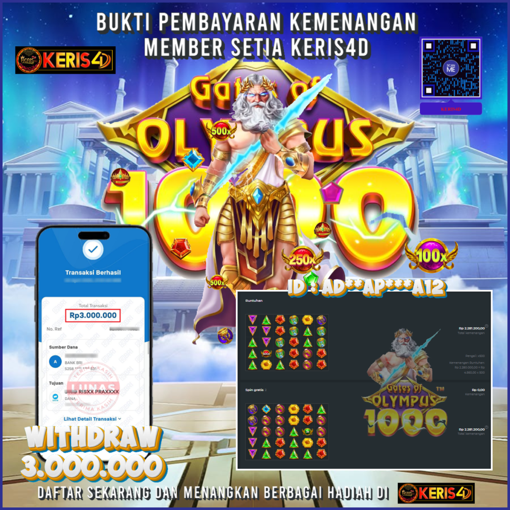 SLOT GACOR KERIS4D JACKPOT SLOT GACOR GATES OF OLYMPUS1000, Bukti Kemenangan , Kemenangan Pg Soft, Menang Platform online, Situs Aman Tergacor dan Aman, Withdraw Berapapun Pasti Di Bayar Langsung, Maxwin Slot Online.